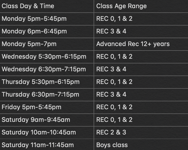 Classes run on Mondays, Wednesdays, Thursdays, Fridays & Saturdays